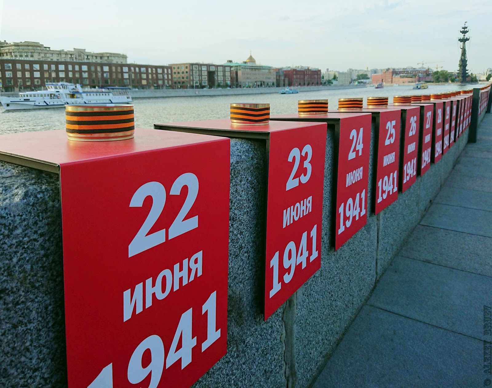 Всероссийская акция "Свеча памяти" на Крымской набережной, Москва. Сегодня в России отмечают День памяти и скорби - 78 лет назад началась #ВОВ, самая кровавая война в истории страны, которая унесла более 27 млн. жизней советских людей. Линия памяти состоит из 1 418 свечей, равных количеству военных дней.